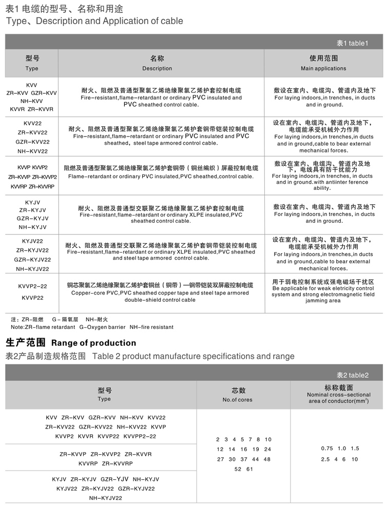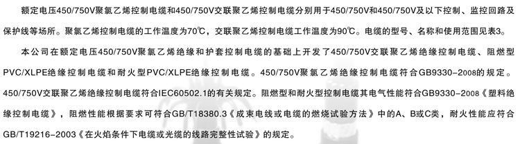 控制电缆使用特性