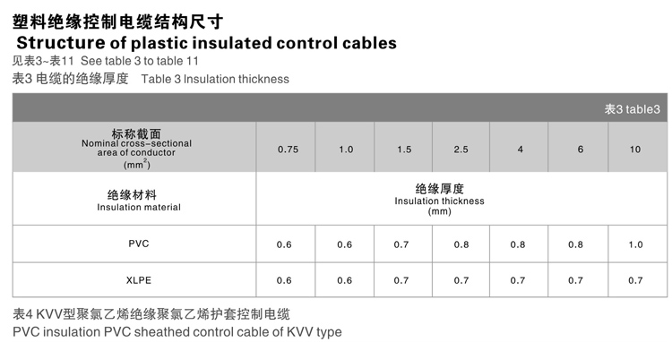阻燃及耐火电缆结构尺寸